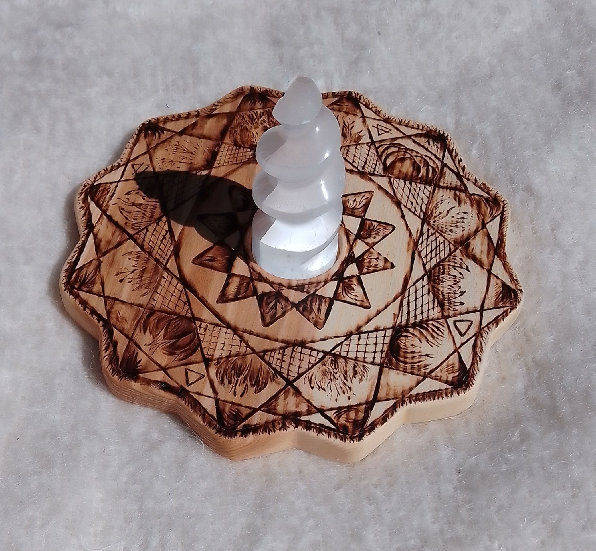 Les créations en bois sont des supports énergétiques. L’onde de forme émet une fréquence qui aide le lieu dans lequel elle se trouve ainsi que les êtres vivants. J’utilise la fleur de vie et mes créations numériques.